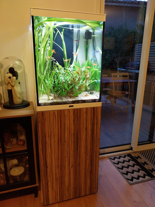 Bonjour, Je vends un aquarium Aquatlantis Tower 163 litres avec meuble en très bon état (2 ans) avec système de filtration, lampe LED, poissons (cardinalis, tétra joyaux, corydoras), et tous les accessoires (minuteur pour la lumière, distributeur de nourriture, pince, ciseaux...). L'aquarium tourne parfaitement (bon équilibre). Prix de l'aquarium neuf (sans les accessoires) : 500€ A venir récupérer sur place.