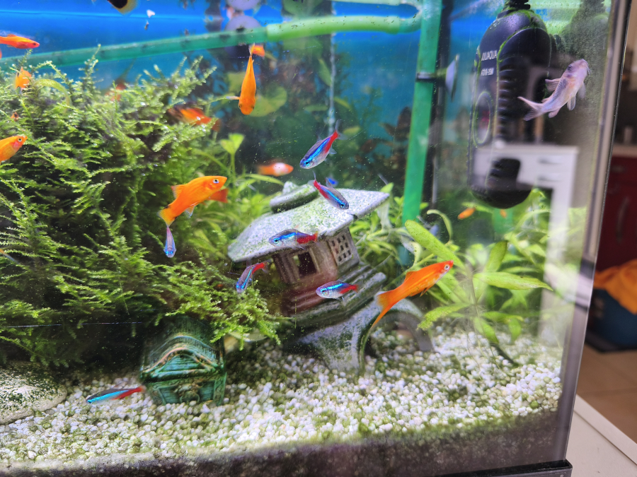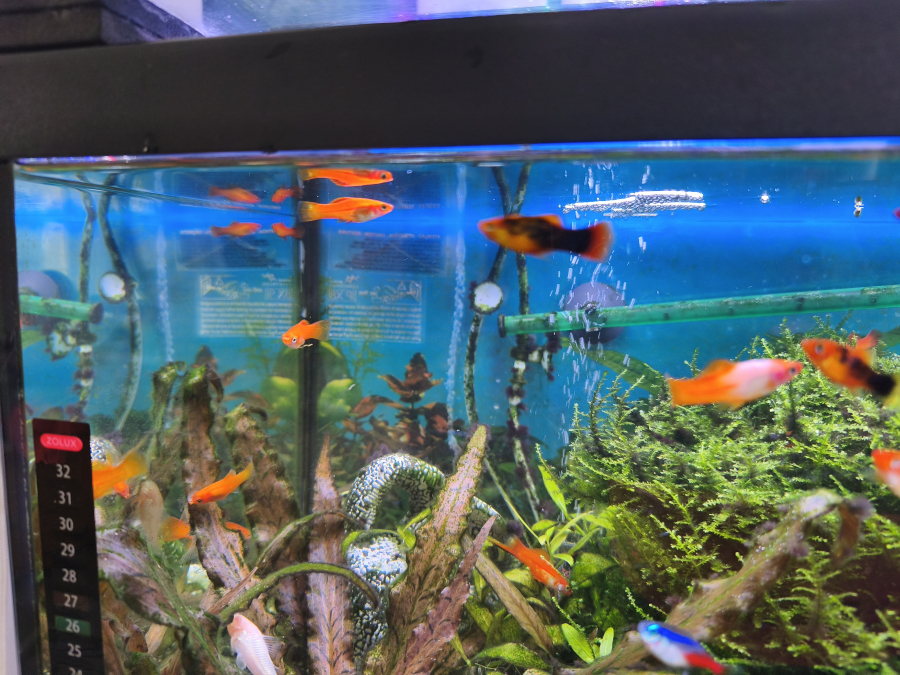 Je vends 30€, mon aquarium de 50l avec tous les accessoires ( filtres, bulleur......) et poissons Platy, xypho, néons...et bébé