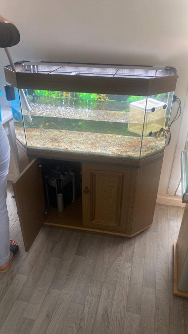 Superbe aquarium complet 240 litres avec meuble, décor, accessoires et poissons