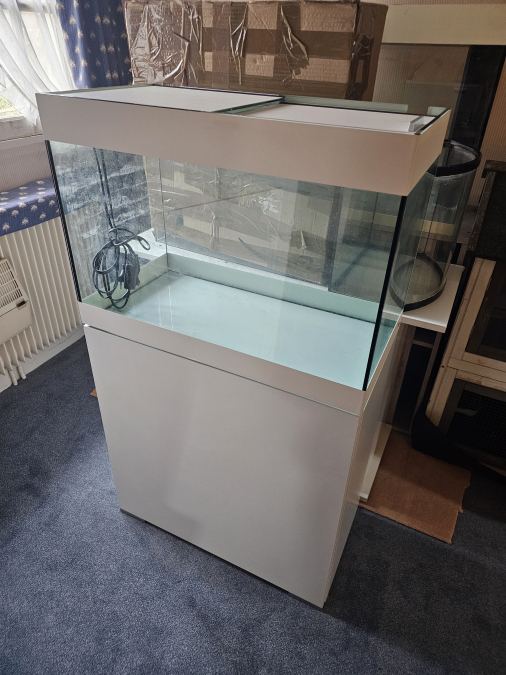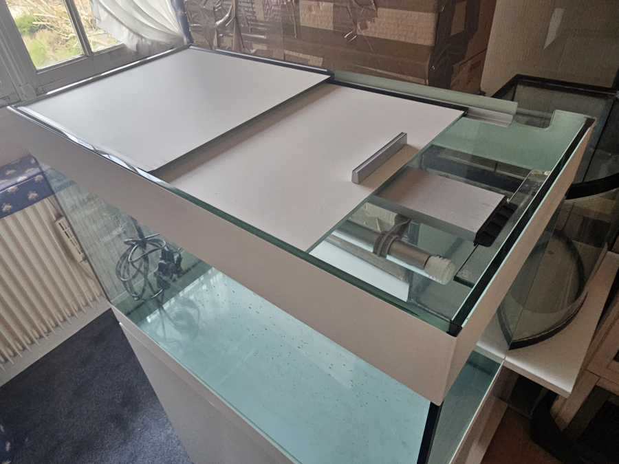 Bonjour, Aquarium blanc neuf acheté en magasin. Meuble qui vient avec. Dimensions : 70cm long-50cm haut -35cm large Je l'avais acheté neuf, mais suite à un problème de stockage je le vends à contre-coeur. A venir chercher vers Melun 77000 La Rochette. Bonne journée,
