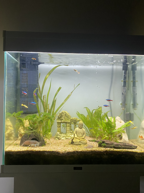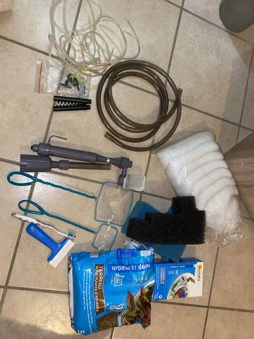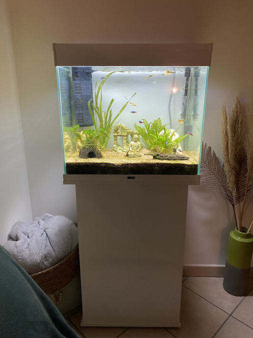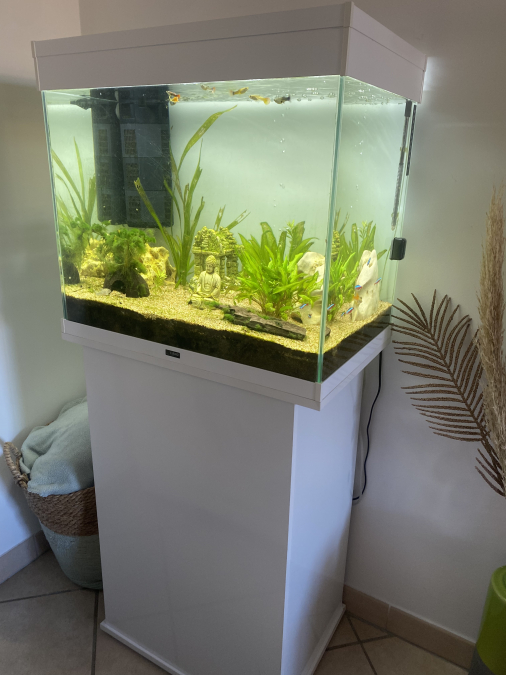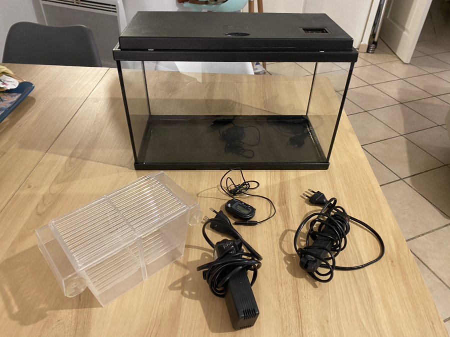 Je vends mon aquarium Ciano de 100L complet, planté avec de de nombreux poissons (guppy, molly, cardinalis, corydoras, bébés guppy, et une superbe crevette bleu du Gabon). La pompe et la rampe de lumière de l’aquarium sont neuves de cette année. Il y a un chauffage et un bulleur avec différents embouts. + un petit aquarium de 20L avec pompe chauffage et thermomètre également que j’utilisais pour l’élevage des bébés. + de nombreux accessoires comme des livres sur les poissons, une couveuse, de la nourritures, des produits d’entretiens, tuyau, 2 épuisettes, un aspirateur de fond, un grattoir a algue, du terreau, de la mousse, déco, des filtres céramiques… Je vends avec regret, cause déménagement hors région et je n’ai plus beaucoup de temps pour m’en occuper. le tout à venir chercher sur place .À débattre dans la limite du raisonnable