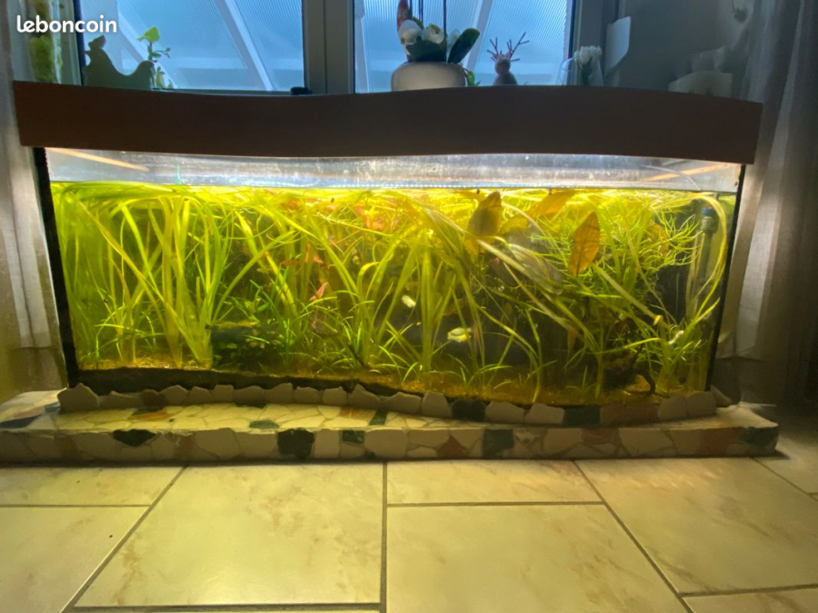 Vend aquarium complet de 200 L 1m25 de long Vendu avec une 15 aine de poissons (tetra et moly) pas mal de plantes, kit co2, chauffage, pompe, rampe led On le vend car plus le temps de s’en occuper Prix ; 450€ négociable dans la limite du raisonnable Je suis joignable au 0770703102