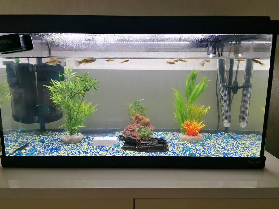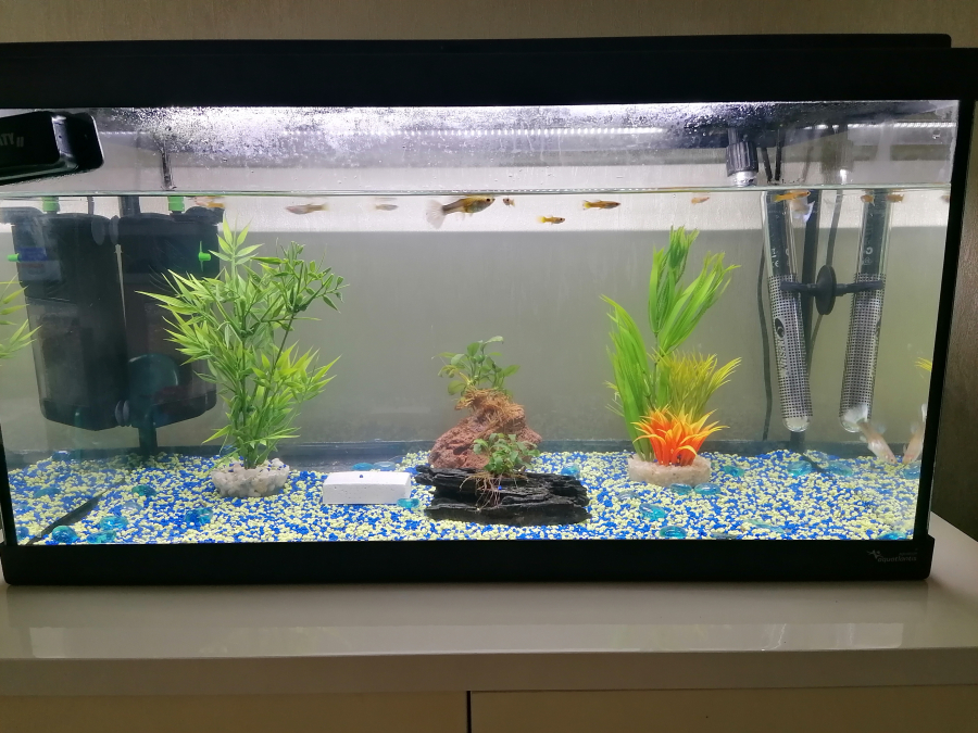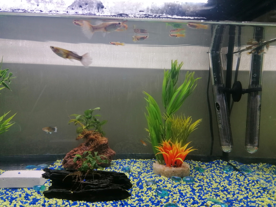 Aquarium complet avec néon 60L + poissons accessoires vendus avec : épuisette, aimant nettoyage vitre, filtre, thermomètre, plantes naturelles et artificielles. lot de 11 guppys jeunes (7) et adultes (3), parfait pour démarrer un nouvel aquarium. Les jeunes guppys vous offrirons une expérience fascinante de croissance et de reproduction. L' élevage de guppys est idéal pour les débutants en aquariophilie car ces poissons sont connus pour leur résistance et leur adaptabilité. Ils s'acclimatent facilement à différents types d'eau et sont peu exigeants en terme de soins. Ces guppys sont en excellente santé, nourris avec une alimentation équilibrée et élevés dans des conditions optimales. A venir récupérer sur place