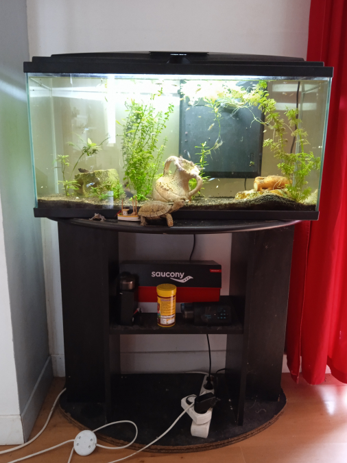 Mon déménagement ne me permet pas de conserver mon aquarium. Du coup je vends l'ensemble : aquarium 80 litres avec pompe et filtrage, chauffage et éclairage intégrés; décorations, meuble sous aquarium, ustensiles (épuisettes, 2 distributeurs de nourriture, ...), plantes (si vous souhaitez les conserver), 1 ancistrus, 1 corydoras, 1 gourami et des guppys.