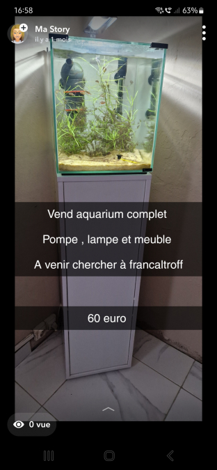 Vend aquarium complet Pompe , lampe et meuble A venir chercher à francaltroff