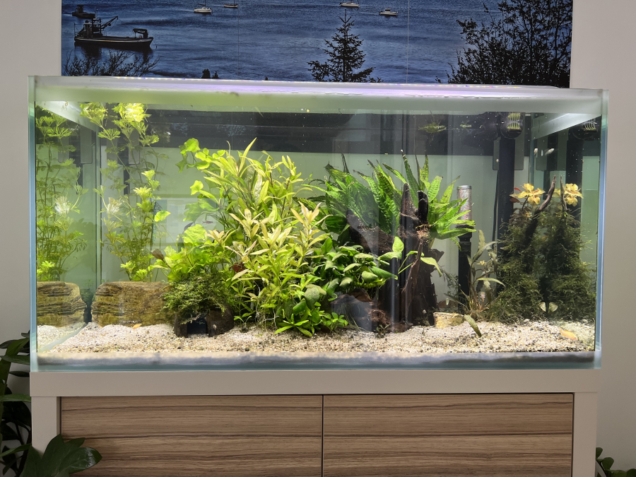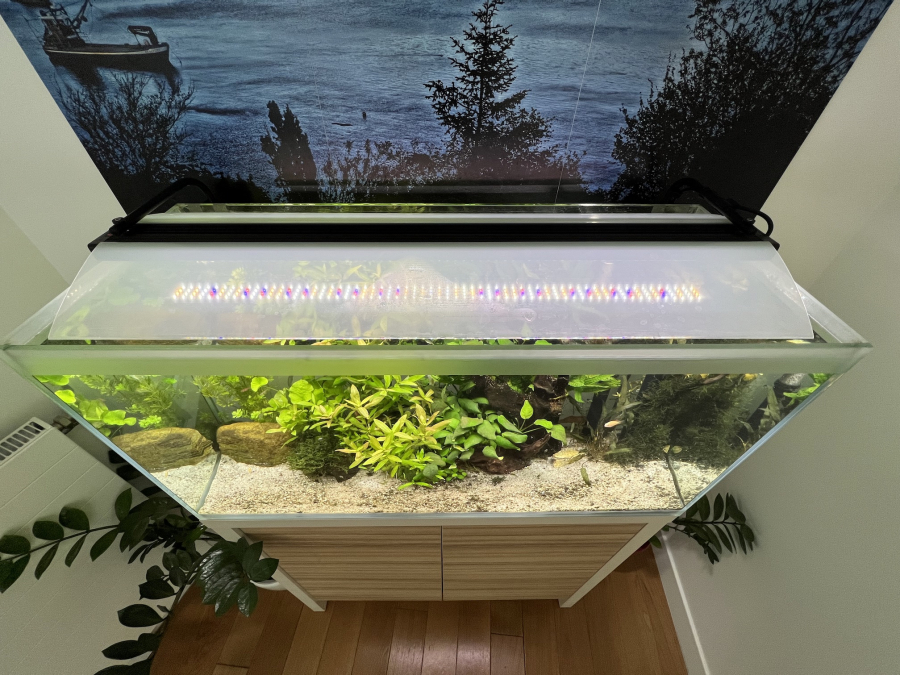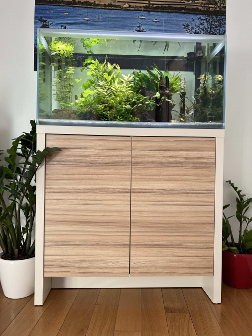 Je vends un aquarium fluvial F90 en très bon état avec son filtre, capacité de 129 litres. Comprend l'éclairage, la filtration et le meuble. Très design avec bordure dépolie et technique intégrée dans le meuble : aucun tuyau ni fil visible! La cuve fait 90x35x45cm et la hauteur totale avec le meuble fait 130cm. L'éclairage est réglable par Wifi. Je donne aussi un certains nombre d'accessoires (gants de nettoyage, mousses filtrantes de rechange,...) Il faudra juste ajouter une résistance. L'aquarium est vendu soit vide soit avec sa végétation et population (rasbora, crevettes, escargot et écrevisse). N'hésitez pas à me demander des photos complémentaires - je me sépare de mon aquarium pour plus grand... L'aquarium est à emporter à proximité de la Bibliothèque François Mitterrand, 13ème arrondissement.
