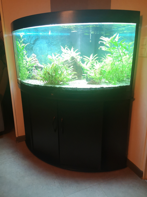 A saisir: Vends aquarium d’angle Juwel 350 L complet ( chauffage + pompe + décor) avec meuble 2 portes. Actuellement encore en eau, donc peut être pris avec l'écosystème. Dimensions : 87 x 87 x 65 cm. Hauteur totale avec meuble 1,40 M