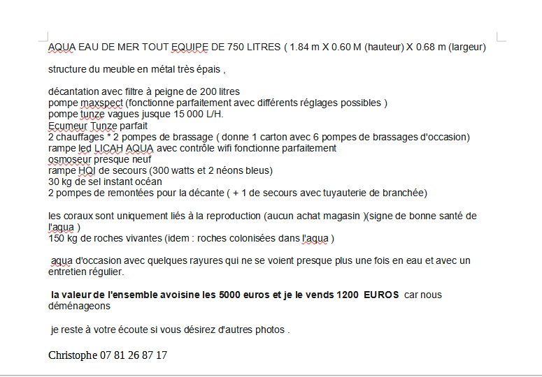 DECANTATION POMPE ECUMEUR CHAUFFAGE RAMPE LED OSMOSEUR CORAUX MOUS 150KG ROCHES VIVANTES VALEUR ESTIMEE 5000 EUROS VENDU 1200 EUROS