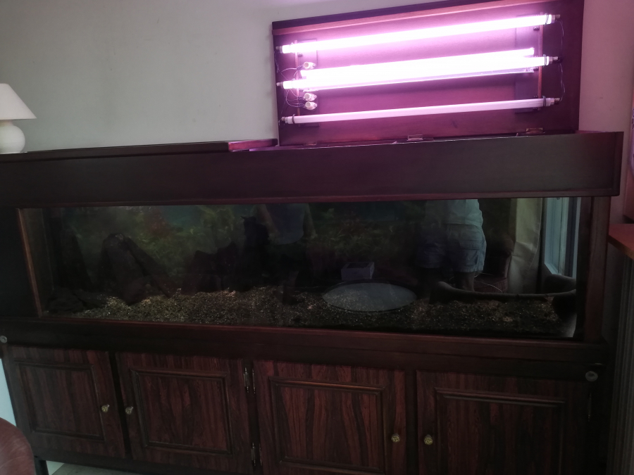 aquarium 400 litres 2 mètres par 0,50x0.50 technologie AFC plus matériel etc. conception très facile pour l'entretien de l'aquarium et pour l'éclairage Pour porter cet aquarium prévoir au moins 4 personnes