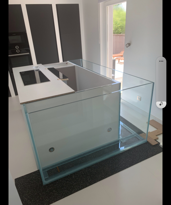 Je vends cet aquarium en L, 1m3. Il s'agit d’une création qui peut être installée autour d’un îlot comme sur la photo ou pour créer un bar. - Mesures : 1er coté : L155xl26xh90 2ème coté : L226xl36xh90 - Matière : Verre 2cm - Caches et couvercles en corian - Accessoires inclus : Système d'éclairage LED, 2 pompes, chauffage, module de remplissage d’eau automatique et programmable. A démonter et emporter soi même Merci de faire une offre N'hésitez pas à me contacter pour plus d'informations ou pour convenir d'une visite !