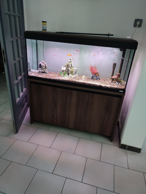 Aquarium meuble marque Fluval 240 Litres. 120cm de largeur 127cm de hauteur 40cm de largeur 2 portes pour rangements filtre Fluval 306 (vendu avec) ou autres accessoires. Vendu vidé et avec les accessoires filtre et déco. Prix négociable. A venir chercher sur place