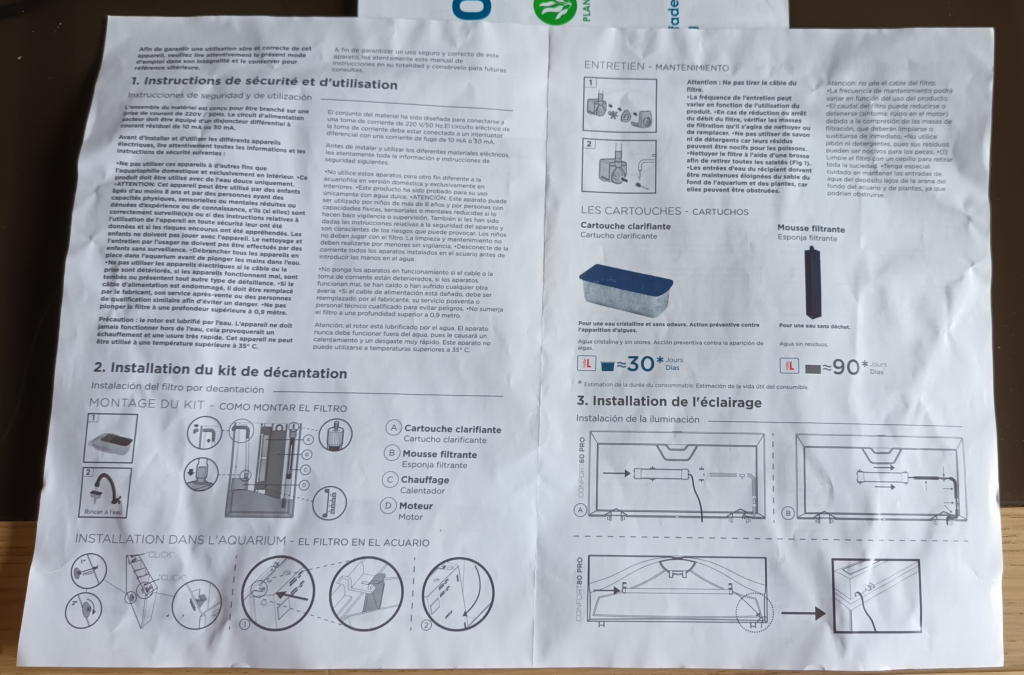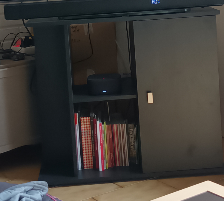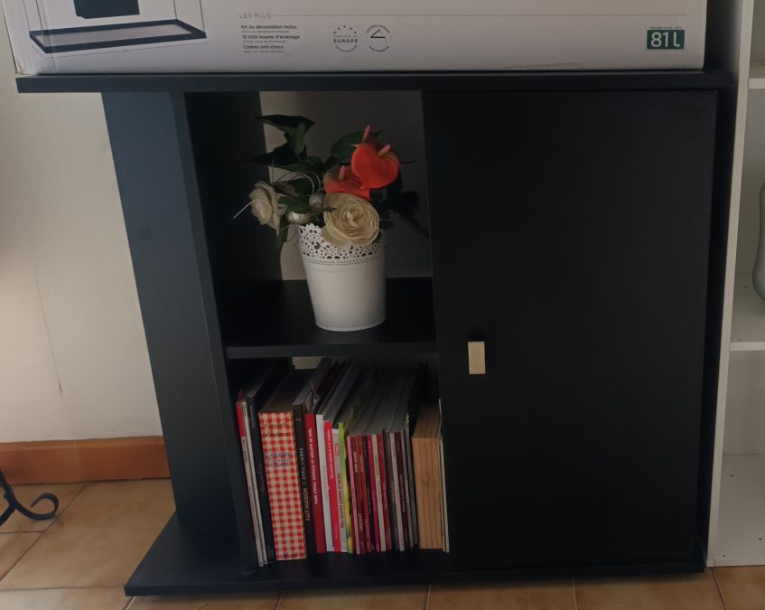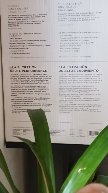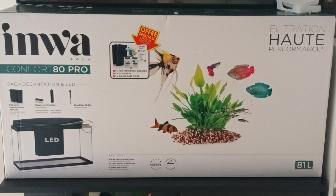 Aquarium INWA 80 pro neuf avec accessoires neufs & anciens + meuble + 4 Cladophora aegagropila boule de mousse qui souffrent dans leur petite boîte . (Cadeau pour mon anniversaire ?) 1 mise en eau sans poisson de 2 jours. Cause : rénovation maison donc trop de poussière & risque de l'abîmer
