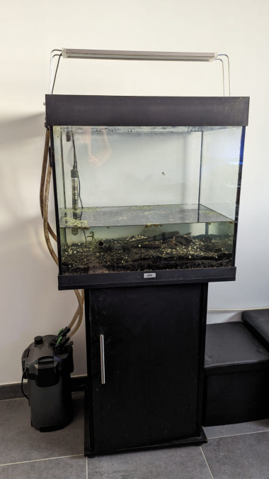 Aquarium Juwel Lido 120 ( 120L ) avec son meuble + une pompe externe "Tetra ex 800 plus" de 790 L/H max ( valeur neuf 130€, peu servi ) + une rampe led + un chauffage.