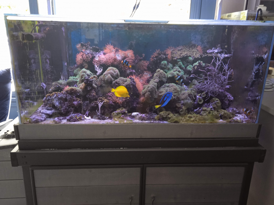 bonjour , je me sépare de mon aquarium marin avec tout son équipement et le vivant ,il mesure 1m40 de long 0m75 de large 0m61 de haut , 640 l il contient de nombreuses pierres vivantes naturelles avec des Ricordéas verts Florida Rhodactis Green ,Zoanthus ,deux éspèces de gorgones un oursinTriptnustes Gratilla , des anémones Antacméa quadricolor roses en poissons tous adultes et de bonnes tailles , un couple amphiprions Clarkii ,un couple d, Ocellaris les deux couples pondent régulièrement ,un Centropyge Bispinosus , un épatus , un Flavescens ,je vends le tout 1800 eu ou tout le vivant 1200 eu et l, aquarium ,l, équipement et le meuble 600 eu, pas de détaille ,pour plus de renseignements n, hésiter pas à me contacter
