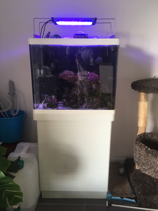 Bonjour, Nous vendons notre aquarium RedSea 130. Il est complet. Nous avons remplacé le capot néon par une rampe LED mais nous disposons toujours du capot si vous souhaitez remettre des néons et fermer la bac. Vendu avec : Son meuble 1 Écumeur Aquamedic (plus performant et silencieux que celui d'origine) 1 Rampe LED Aquarius 32W et son programmateur Aquarius control 1 Osmolateur Tunze et sa cuve 15l 3 bidons de 20l pour transporter l'eau osmosée 2 Résistances pour chauffer l'eau 1 groupe froid Plusieurs pompes de brassage Une cuve de stockage d'eau 11kg de pierres vivantes Divers accessoires 950 euros le tout prix négociable. Nous vendons aussi les habitants du bacs : un couple d'Amphiprion, une crevette et une ophiure. Possibilité de le livrer proche de Toulouse ou Hautes-Pyrénées.