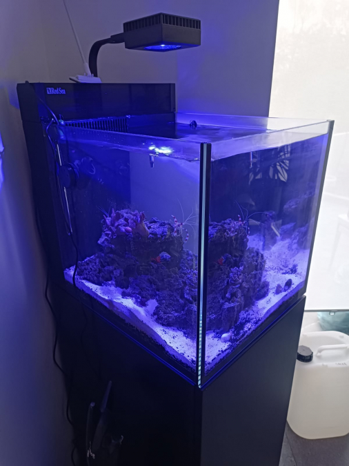 Voici un aquarium MAX NANO de la marque Red Sea 100L. a été acheté il y a 6 mois et est garantie de deux ans. celui ci comporte tout le matériel nécessaire ( filtres,chauffage, éclairage led, nourriture, pompes, thermomètre, nettoyage,…). celui-ci contient un poisson clown, des étoiles de mer, plusieurs pierres (6) pour un total de 11kg. une anémone, trois crevettes + 3/4 crabes ainsi que quelques escargots. Quelques coraux y sont. l’aquarium vide a un prix initial de 1299€. Les pierres ont un prix initial de 25€ le kilo. 30L d’eau supplémentaire et un osmoseur appart à branché.