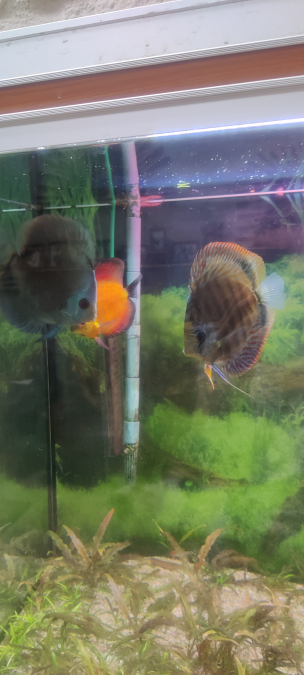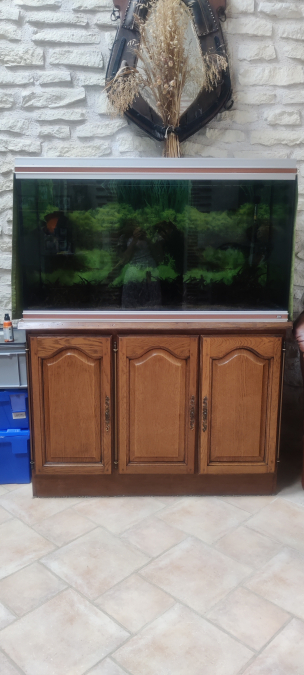Aquarium 400 /450 litres + meuble en bois adapté Pompe / filtres Système co2 Osmoseur Chauffage 3 discus adultes et nez rouges + plantes Le prix en promo de l aquarium à jardinage : 650 euros actuellement. Prixun discus : entre 100 et 150 euros 1m20 longueur 0,71 hauteur 0,53 largeur