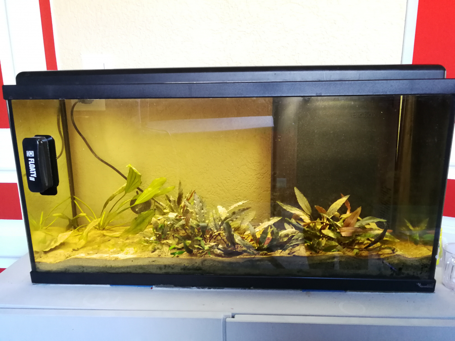 Recherche passionné pour Aquarium occasion avec 1 bébé guppy à vendre, en l'état, avec décoration, filtre, matériel complet, plantes, lampe.