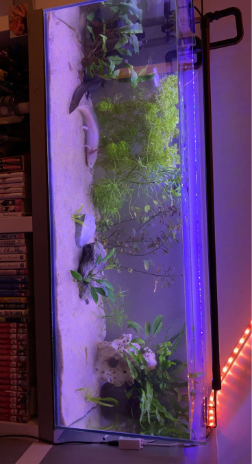 Bonjour, je vend mon aquarium tout équipé -> filtre externe adapté, rampe led réglable ( couleur/intensité) Substrat compris Plante si vous le souhaitez Ventilateur de surface pour l’été Prix négociable dans la limite du raisonnable :)