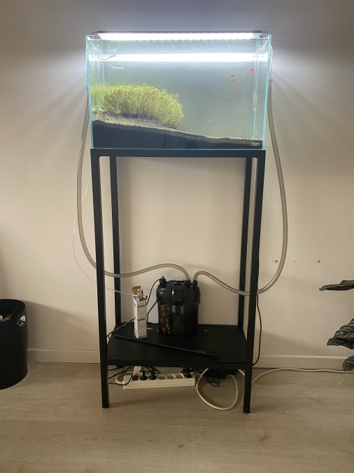 - Aquarium Ada 60P 60x30x36cm - Verre de 6mm, joins invisibles. Un des plus beaux aquarium sur le marché. État d’occasion. - Chihiros-lampe LED RGB A Plus lumière LED pour Aquarium, Module intégré à l'application, lumière RGB, avec 3 canaux Dim - Lily pipes entrée et sortie Chihiros en verre - Set complet Co2 (sans recharge) Tropica + anti retour + diffuseur en acrylique - Filtre externe Éden 511, 600l/h, chauffage intégré, tuyaux transparents en bon état (non coupés) - Meuble support en métal fait sur mesure, avec plaque de support pour le filtre