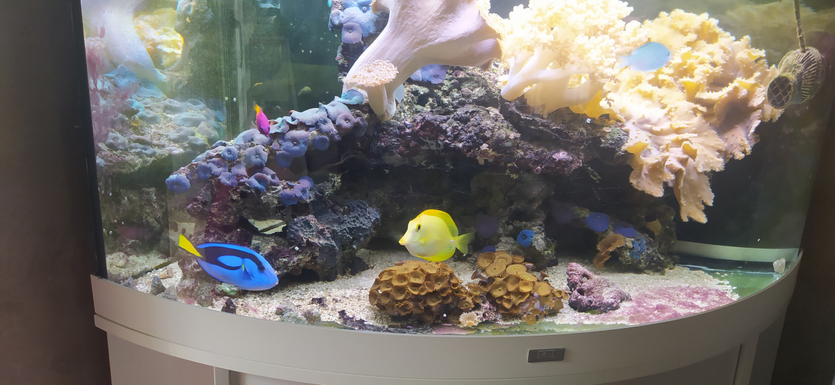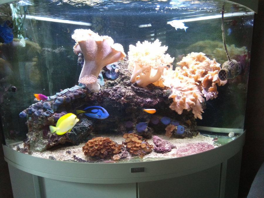 Aquarium juwel d'angle et vivants 1 hepatus 1 flav 2 clowns noir et blanc 1 vanille fraise 2 demoiselles bleues 1 ophiure 2 lysmatas amboinesis Vente en lot si possible Faire offre. Possibilité de vente du vivant séparément.