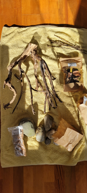 Hardscape pour aquascaping amazonien complet composé de : - racine de talawa - litière de feuilles amanazonienne - différentes gousses - tiges de palmier - sachets de tanin blackwater - roches de rivière Le kit complet coûte 150€ je le cède à 50€ N'hésitez pas à consulter mes autres offres !