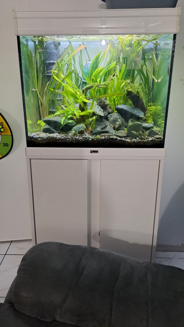Bonjour, Vend aquaruim Aquatlantis élégance expert 60 blanc avec meuble, acheté neuf il y a environ 5 ans. Il est encore en eau pour le moment. Très bon état. Cause de la vente : passage à un aquaruim un peu plus grand suite à de nombreuses naissances. (Il y a pas mal d'algues en ce moment car beaucoup de bébés et je siphonne beaucoup moins de peur de les aspirer, un gros nettoyage sera fait après déménagement dans l'autre bac) La dimension du bac est de 60x40x55. Meuble 60x40x83 cm, ensemble hauteur 138 cm. La capacité du bac est d'environ 100 litres net avec une hauteur d'eau entre 42 à 45 cm selon la hauteur du substrat/sol. Cuve brut 130 litres environ. Vendu avec un chauffage de 200w, une rampe d'éclairage achété neuve fin décembre 2025 (idem origine). Pas de pompe. Je peux laisser le sol (non adapté aux corydoras), des plantes et deux ou troix petites racines de mopani mais je récupère toutes les pierres. Je peux aussi tout enlever selon préférence. 120 euros Je peux fournir une biobox 2 new génération neuve, récupérer sur le nouveau bac. Filtration 650l/h, chauffage 150w et l'ensemble des mousses/ éléments de filtration inclus. (je peux la roder si besoin pour utiliser le bac immédiatement) 40 euros de plus Ensemble 155 euros A disposition pour toutes questions Fabien (dispo dans 3 semaines)