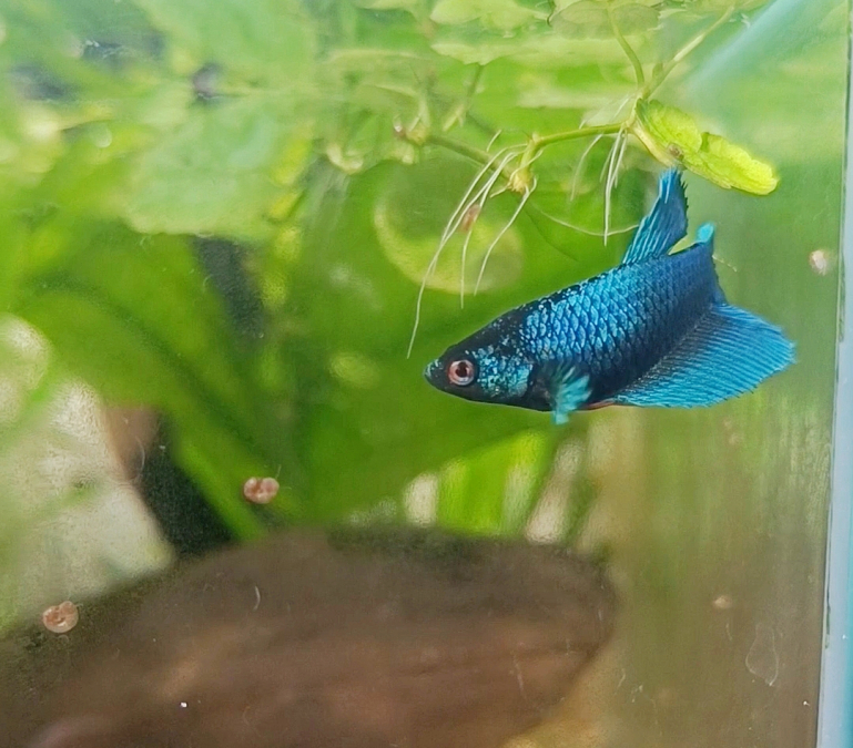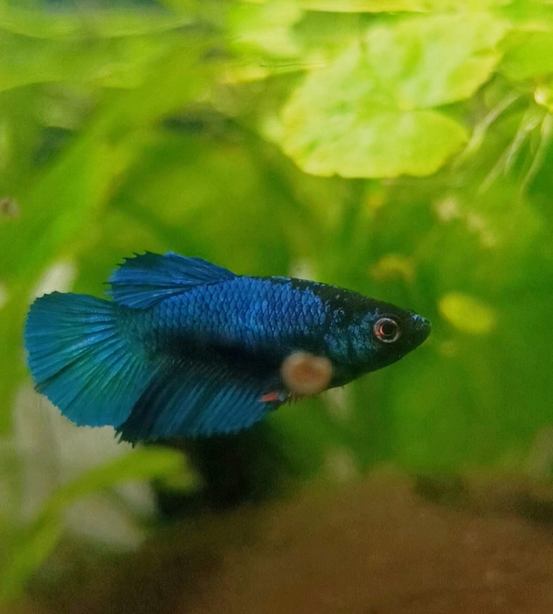 Femelle issue d'un père bleu marbré et d'une mère red fancy. Née en France le 30 juillet 2025, forme de voiles super delta. Bon caractère, elle est très cool mais n'hésite pas à parader devant les escargots ? Très curieuse et observatrice. Mange de tout (granules/vivant/congelé) Pas d'envoi. Me contacter en privé