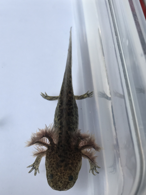 Jeune axolotl à réserver, parents sauvage et albinos.