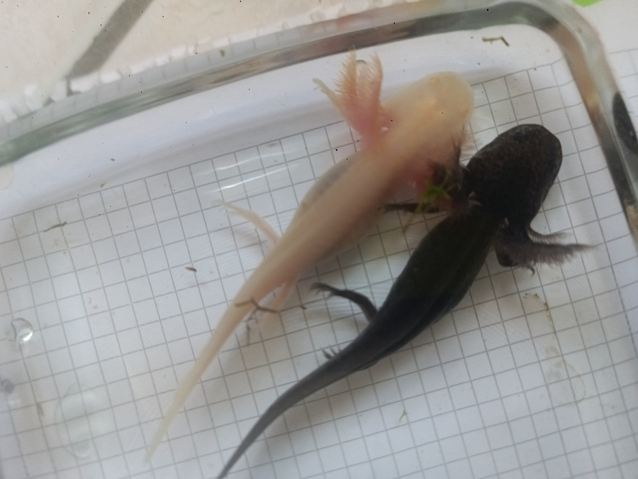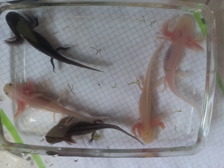 J'ai de jeunes axolotl (Ambysoma mexicanum) issus d'une reproduction de mon couple. Il y a des albinos, des fauves (type sauvage), des leucistiques, des mélaniques et quelques gold. Les plus rapides ont atteint une taille suffisante pour changer de maison, ils sont donc disponibles dès maintenant. N'hésitez pas à me contacter pour plus de renseignement.