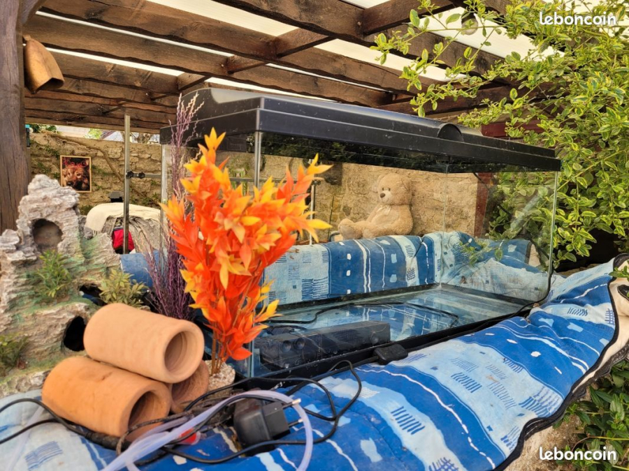 Bonjour, Mon enfant est parti vivre à l'étranger, c'est la raison pour laquelle, nous vendons ses bébés à des personnes qui les aiment et prennent bien soin d'eux. Crocmou, axolotl femelle mélanique sauvage (noire) de 1 ans, environ 22 cm avec branchies bleu. 40€. Godzilla, axolotl male sauvage copper (marron) de 1 ans, environ 26 cm avec branchies violettes. 40€ Il serait préférable de laisser la femelle le male pour lui éviter une occlusion. A vendre également: 1 aquarium +meuble 300 litre avec cachettes, bois flotté, pompe JBL et éclairage avec variateur couleur et intensité. 290€ 1 aquarium 80 litres avec ses accessoires et décorations. 60€ Je peux faire un tarif pour achat en lot En vous remerciant