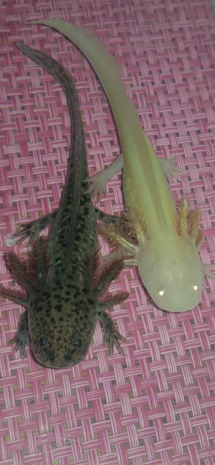 Bonjour vend axolotis gold albinos et 1 type sauvage 18 cm 20 € unité Plus de photos sur demande merci