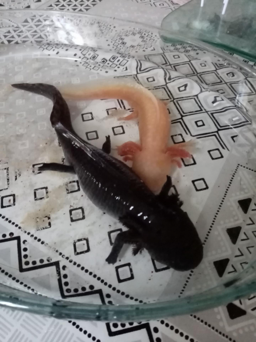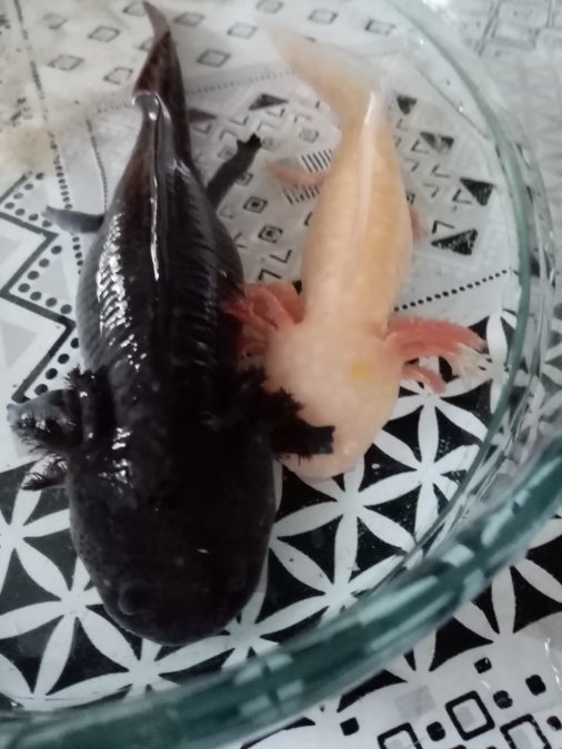 Bonjour je vends ce couple d’axolots, le mâle (noir) est mexicain et possède un certificat. La femelle blanche est hybride ils ont tous deux 1 an.