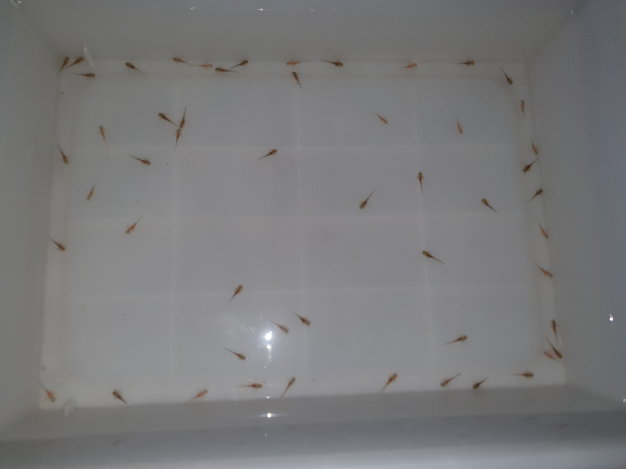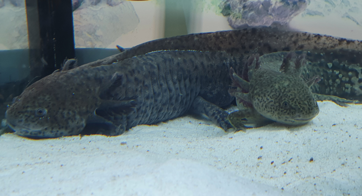 Axolots à réserver Ils sont nés entre le 28 avril et le 2 mai pour les petits retardataires. Ils vont avoir 3 semaines cette semaine. Ils rejoindront leur nouvelle famille quand ils feront 10cm : vers l'âge de 4-5 mois (entre fin août pour les plus précoces et fin septembre pour les retardataires). Actuellement ils sont nourris au Nauplies d'Artemias (insecte d'eau), bientôt ils commenceront à manger des vers de vase, des daphnias, puis des pellets et des vers de terre. Les axolotls ne peuvent pas être sexés avant qu'ils atteignent la taille de 20cm en général, donc je ne peux pas vous promettre de vous réserver un mâle ou une femelle car ils rejoindront leurs nouvelles familles avant qu'on puisse voir s'il s'agit de mâles ou de femelles. Sur la première photo vous pouvez voir les 2 parents qui sont en parfaite santé et qui vivent dans un aquarium de 1m50 de long x 50cm de large. La plupart des bébés ont la couleur des parents : couleur sauvage. Sur la 2ème photo vous pouvez voir une deuxième couleur possible : leucistique. Sur la 3ème photo vous pouvez voir les bébés qui sont encore très petits. Prix : 20 euros l'axolotl (en espèces). L'axolotl a besoin d'une certaine surface au sol, il est préférable qu'il vive à plusieurs mais sans poissons ou escargots (il y a exceptions mais très peu). Investir dans un groupe froid est nécessaire si vous voulez garder vos axolotls en vie pendant l'été, ça aide à maintenir une eau froide à 16-18 degrés car les axolots ne supportent pas les températures trop élevées. Il est conseillé de nourrir ses axolotls avec des pellets spécial axolotl, de temps en temps on peut leur donner de la truite en petits morceaux, des vers de terre mais les pellets leur apporteront tout ce dont ils ont besoin pour se développer correctement et se sentir bien. Concernant le sol à choisir pour votre aquarium : uniquement du sable fin voire très fin, non tranchant. L'axolot aspire beaucoup de sable quand il mange, il en recrache une partie mais peut en ingérer, si vous avez du substrat moyen ou gros dans votre aquarium, ils risquent une occlusion, cela cause beaucoup de décès chez les axolotls. Si vous avez des questions, n'hésitez pas à m'envoyer un SMS, un mail. Je ne réponds aux appels que dans un second temps. Je privilégie les premiers contacts par écrit. Merci :)