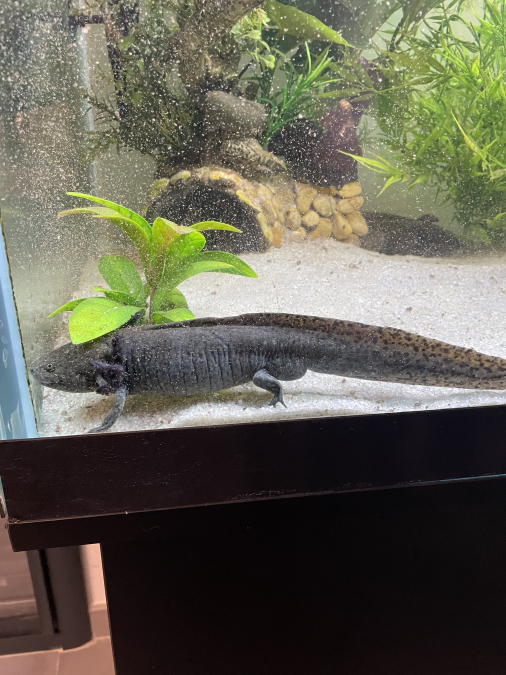 Vend un axolotl male sauvage noir à taches blanches. 28cm. Pas sérieux s’abstenir
