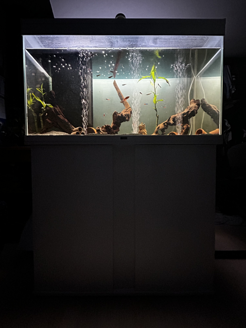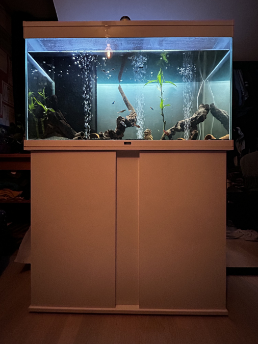 Bonjour, Je vends mon aquarium de 240L avec son meuble double porte au prix de 200€. Il est encore en eau, je le viderais pour la vente. Il est possible d’y ajouter des decos poissons sables filtre etc… à voir en privé