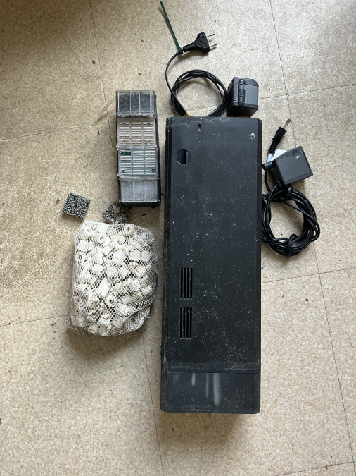 Je vous propose un bac à décantation de dimension : 56 X 15 X9 cm D’épaisseur. À l’intérieur, un emplacement fait exprès pour la pompe et pour le chauffage le chauffage pas un plus grand prix mais si vous en souhaitez un j’en ai plusieurs Le bac est livré avec deux Pompe de remontées de 600 l/heures/jour avec cordon de 3,50 m, chacune en état impeccable Plus un sac de nouilles céramique, fermeture par zip 2 bioceraponds + Masse filtrante , en plus dans des petits casiers en plastique, incluant mousse bleue ouate, bille en céramique, charbon actif ———Prix 40€——— J’habite à Nanterre à côté de la Défense. Ainsi vous pourrez vérifier le bon fonctionnement des Pompe.