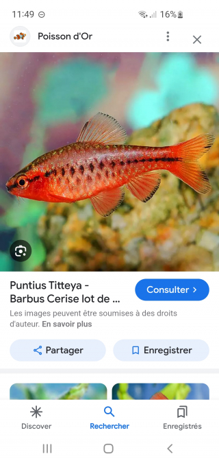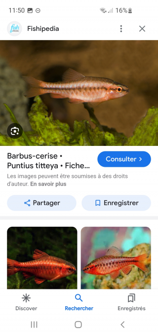 Je vends 10 barbus cerise en pleine forme 4 mâles pour 6 femelles. Ils sont de différentes tailles de 2 à 3,5cm.