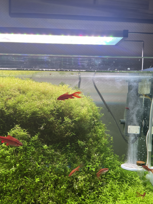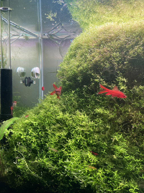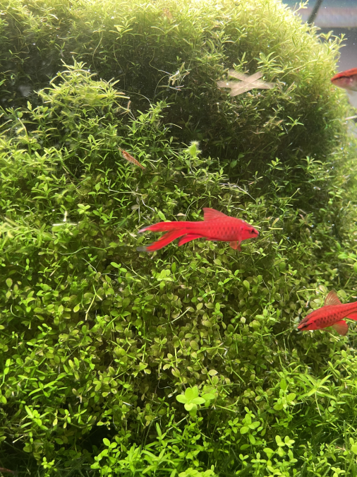 Groupe de Barbus Cerise d’environ 15/20 individus avec adultes et jeunes