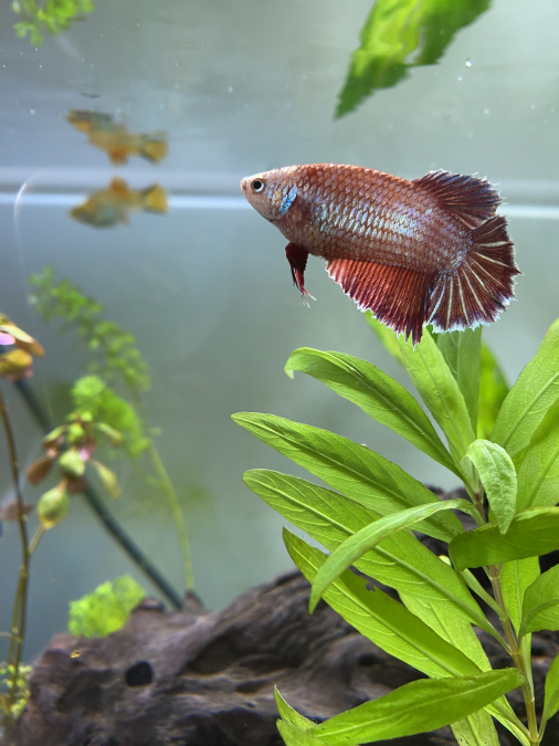 URGENT Donne contre bon soin mon betta femelle car devenue agressive avec mon autre betta femelle. Est ok avec avec d’autre poissons. En bonne santé. Jolie couleur, rouge avec des reflets bleus. On me l’a vendu en femelle, mais j’ai un doute sur cela. A venir chercher sur place.