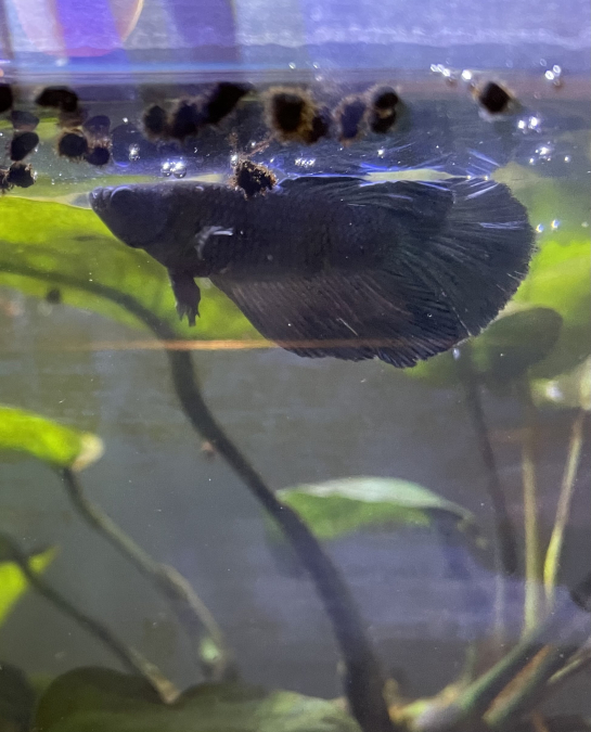 Betta femelle alien halfmoon (croisement: père alien - mère halfmoon) Age 6 mois (éclosion mai 2024) taille environ 4 cm Remise en main propre sur Rennes et alentours Frais de port complémentaires pour autres destinations
