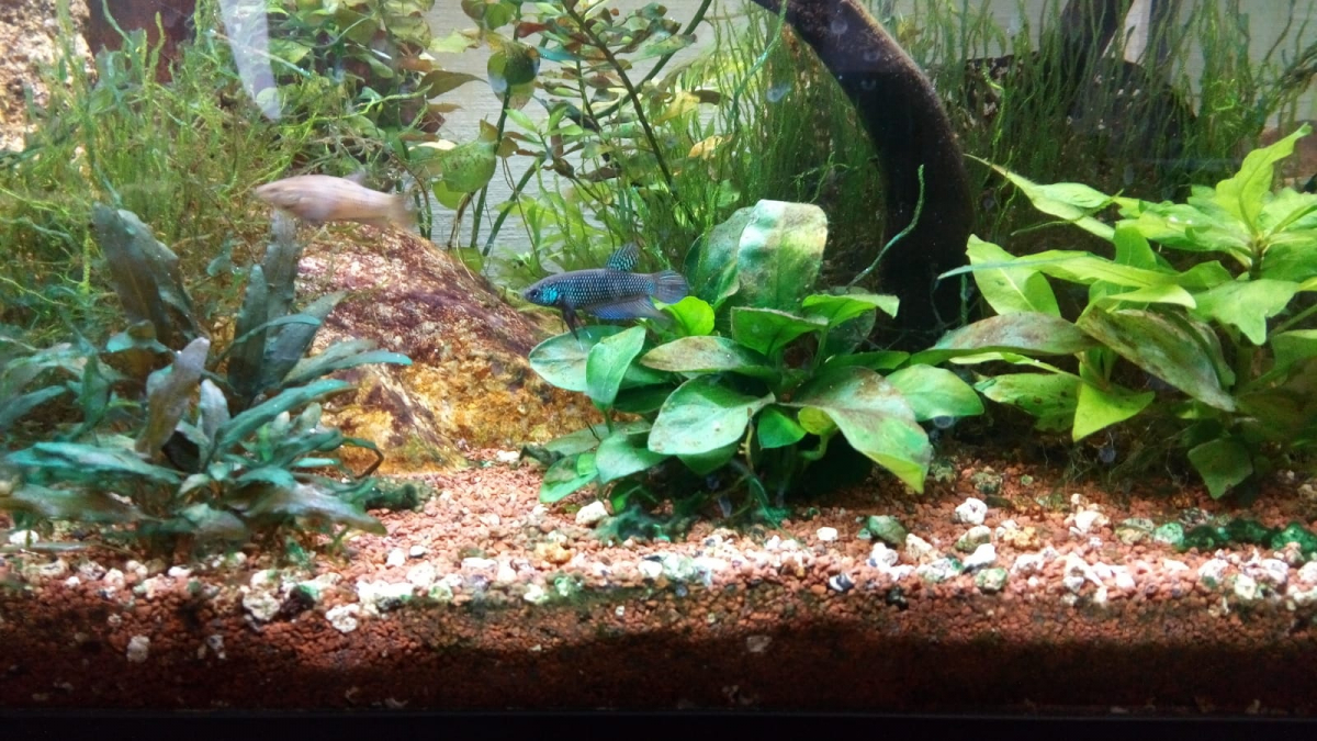 Betta Smaragdina sub-adultes - F3 (Troisième génération d'élevage, arrière-grands parents sauvages) aucune sélection ou croisement. Espèce de forme et couleur naturelle, cousine proche du poisson combattant mais pouvant vivre à plusieurs dans un même aquarium. Conditions de maintient : - Jusqu'à 1 mâle et 3 femelles pour un aquarium de 60l - 25°C (Chauffage nécessaire) - pH acide (5 - 7) - Dureté faible (1 - 6°GH) - Courant faible à inexistant - Nombreuses cachettes naturelles composées de pantes roches ou racines - Présence de plantes flottantes conseillées pour voir apparaître de beaux nids de bulles. Peut cohabiter avec des crevettes type red-cherry adultes et de petits poissons calmes et discrets comme de petits rasboras ou cullies. Alimentation : Ils sont presque adultes et sont entièrement sevrés à la nourriture sèche mais adorent les petites proies vivantes comme les artémias. Acceptent tout types de nourriture sèche. Il est toutefois conseillé de leur fournir une alimentation riche en protéines. Les larves de moustiques rouges (disponibles en animalerie) sont un plus pour l'éclat des couleurs. Comportement : Vif et très curieux, Ils ne manqueront jamais de venir voir tout ce qui se passe autours de l'aquarium. Malgré qu'ils soient réputés paisibles ils restent territoriaux et les groupes maintiendront une hiérarchie stricte entre les membres. Les parades d'intimidation et les courses poursuites sont fréquentes mais n'aboutissent jamais en combat acharné comme chez leur cousins Betta splendens. Afin que les individus dominés puissent vivre des moments plus paisibles ils est impératif de leur fournir de nombreuses cachettes. Il est vivement déconseillé de garder des femelles seules dans un aquarium car celles-ci tenteront par tout les moyens de prendre la position d'Alpha normalement assurée par le mâle. Ceci pouvant en revanche résulter dans de vrais combats. Reproduction : Très facile. Les miens se sont reproduits sans même mon intervention. Suivre rigoureusement le même protocole que pour le Betta splendens (trouvable très facilement en ligne). ---------- Vente en main propre autours de Lorient. Prix (ferme) : 5€ l'unité Vous pouvez me joindre par message si vous avez des questions supplémentaires