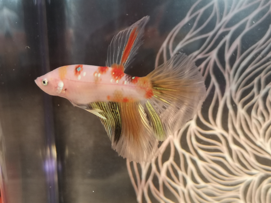 Vends plusieurs betta splendens koi/half moon marbré. Couleurs: jaune, noir et rouge Les photos montrent bien le betta vendu. Plus de photos vidéos sur demande. Mes petits harlequins ont tous 5 mois, sont en pleine forme et commencent à faire des nids. Ils viennent de changer leurs couleurs et devraient garder leurs robes actuelles (pas de garanties ?) Envoi par poste uniquement quand les températures le permettent.