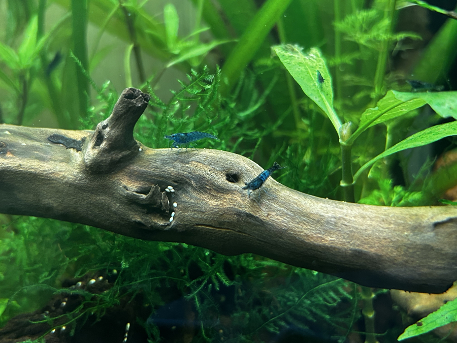 Bonjour ! Je cède de belles crevettes neocaridina davidi var. blue velvet N'hésitez pas à consulter les fiches de maintenance pour en savoir plus ou à me poser directement des questions ! Elles sont en bac communautaire avec beaucoup de cachettes, je les vends en lot de 10 minimum . Un petit bouquet de Salvinia sera ajouté au sachet pour qu’elles puissent se poser pendant le transport .