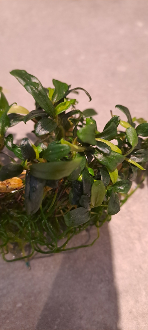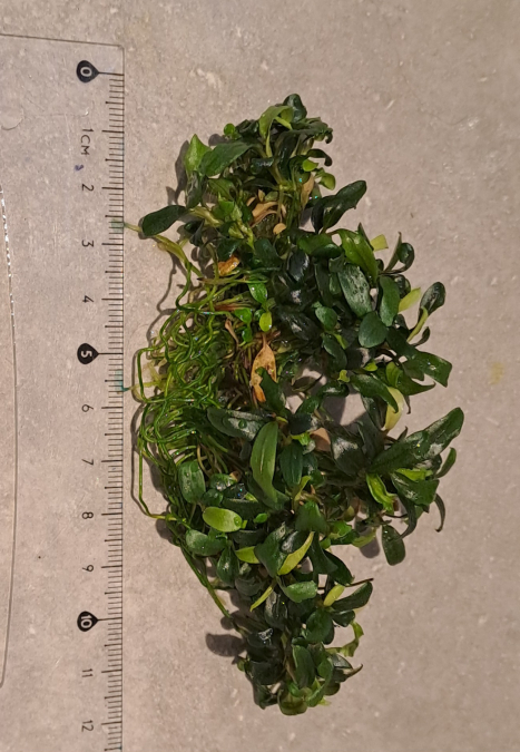 Plante aquarium très rare. (culture en terrarium possible) Clump de Bucephalandra micrantha needle leaf d'environ 12 cm de long sur 5 cm de large comportant pas mal de pieds au total. Feuillage très petit aux différentes nuances de vert. Pousse lente sans C02 ni lumière forte. Comme tous les Bucephalandra c'est une plante épiphyte donc à ne pas planter dans le substrat mais à accrocher sur le décor, bois, roche etc... Envoi postal possible