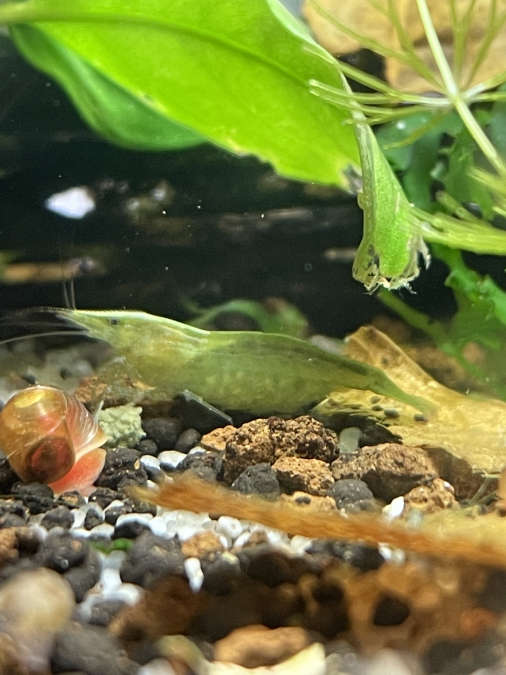 La crevette caridina cantonensis babaulti green est une crevette provenant du sri lanka. Je les ai depuis longtemps,ce vert magnifique ne viens pas de croisement ou de génétique,cette souche m’a été donné par un ami qui les avait acheté il y a + de 10ans en provenance (sauvage). Mes photos sont les miennes,je l’es maintient dans 2 aquariums et suivant le sol (neutre) elles deviennent plus ou moins foncées. Petite elles sont parfois marron ,même orangés puis passent au vert qui ressemble à du vert fluo ,même les œufs sont de cette couleur. À maintenir en spécifique même si elles ne peuvent pas se croiser avec d’autres Caridina ou neocaridina. Je les maintient sur sol neutre,eau mélange osmosé et eau du robinet,vous pouvez à l’eau du robinet. Par lot de 10=60€ Pas de négociation,ni échange.