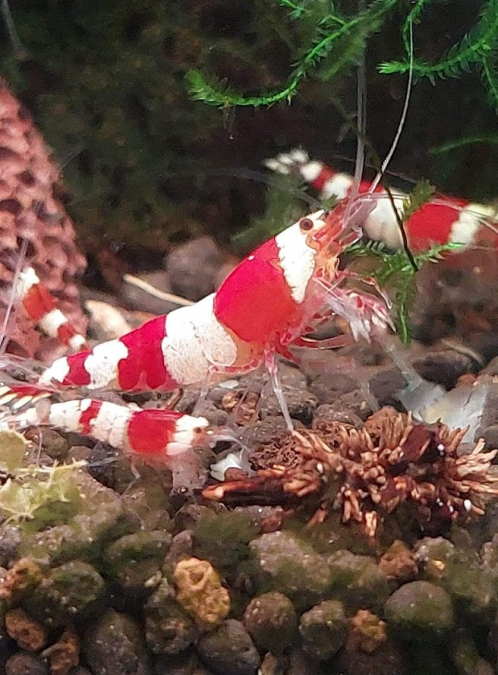 Bonjour. Je propose par lot de 12 (+2 offertes) de la belle crevette caridina Crystal Red (rouge vif, blanc opaque), facile à reproduire et à maintenir. Acclimatation et reproduction sans problèmes sur sol neutre (sable de Loire par exemple) avec eau osmosée reminéralisée ou eau en bouteille type Mont Roucous. A tester avec de l'eau du robinet selon les régions. Envoi rapide par colissimo.