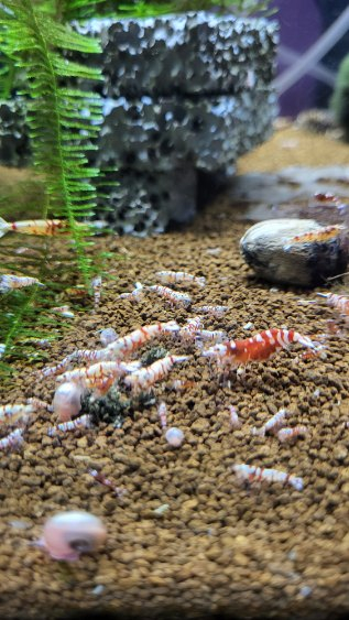 Caridina fancy tiger red élevé sur sol technique