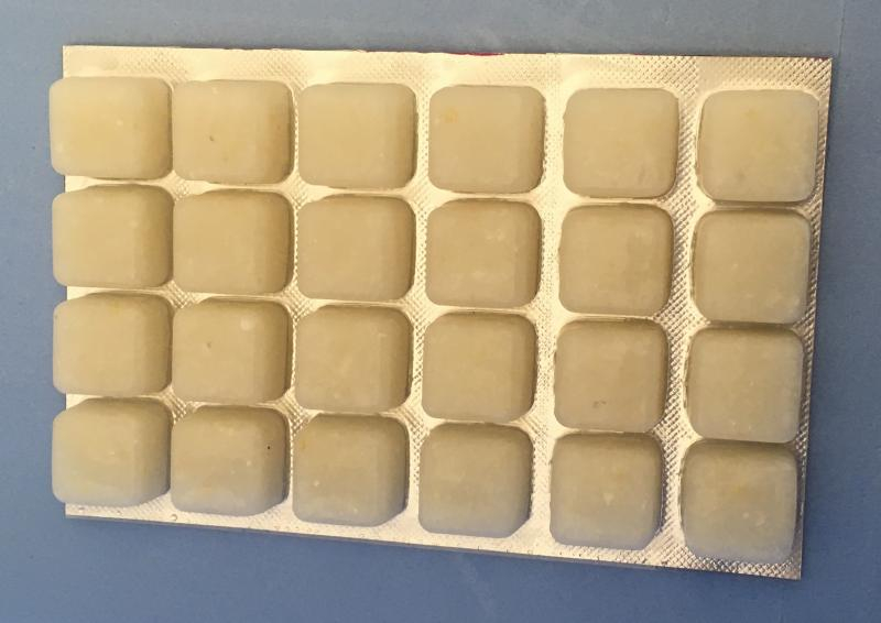 La chair de poissons congelée est conditionnée en blister de 100 grammes isolés en 24 compartiments afin d'en faciliter l'utilisation et la distribution. Les poissons carnivores, particulièrement d'eau douce, adorent cette nourriture naturelle et riche en protéines, essentiellement composée de filets de tilapia.