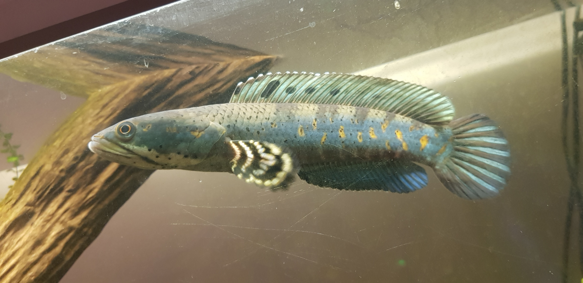 Je vends un magnifique channa pulchra (poisson a tête de serpent) mâle adulte de 25cm. Il n'attaque pas les poissons qu'ils soient petit ou grand et ne mange que des insectes type grillons, des vers de terre et des des vers de vase